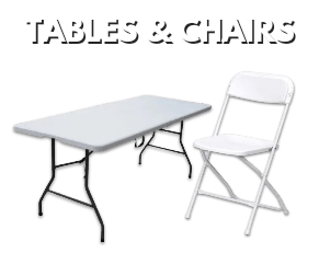 Tables and Chairs: Our handy event furniture makes it quick and easy to transform any location into the perfect party venue.