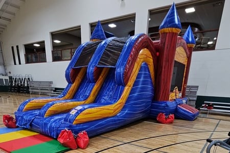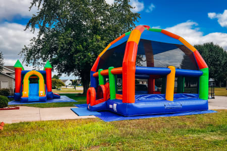 Combo Bounce Houses: These bounce and slide combo units don't just offer the fun of bouncing – they also boast features like slides or basketball hoops for added entertainment.