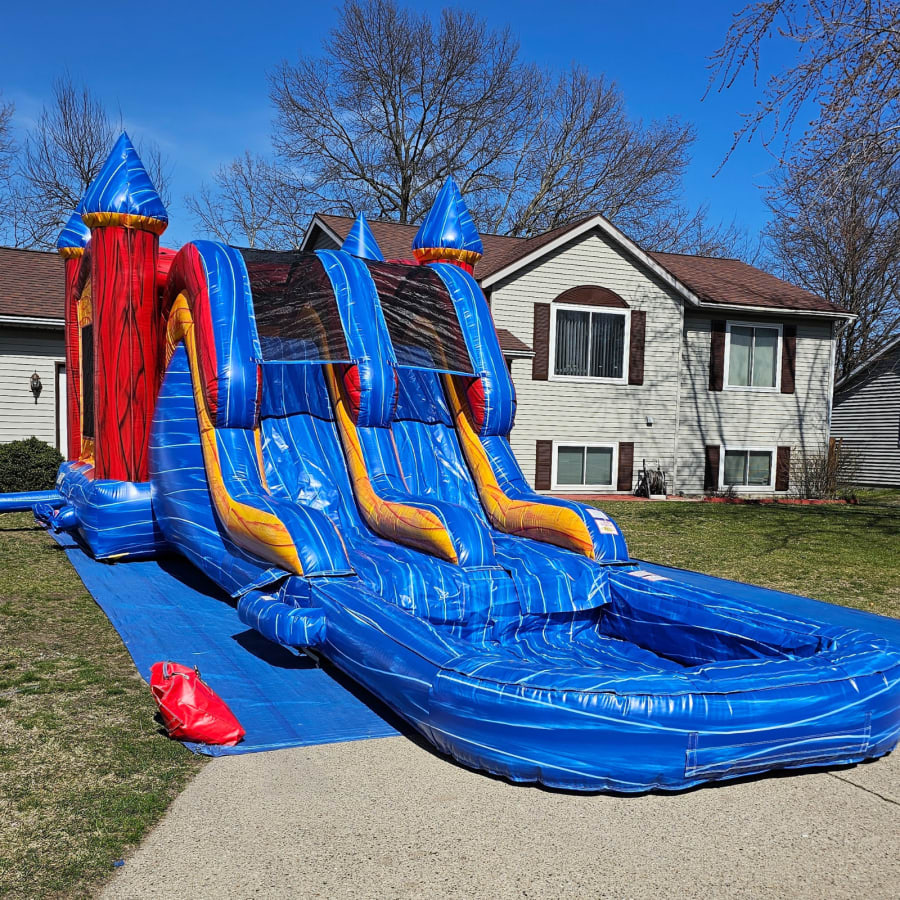 Why settle for ordinary when you can have extraordinary? Marble Castle Bounce House Dual Lane Combo is a versatile inflatable that can be used either wet or dry. Whether you're hosting a summer bash in Zeeland or a corporate gathering in Hudsonville, this inflatable offers flexibility to suit your needs. Ideal for weddings, baby showers, family gatherings, and even church events in Saugatuck, this unit promises to keep your guests entertained and delighted. 💦🌞