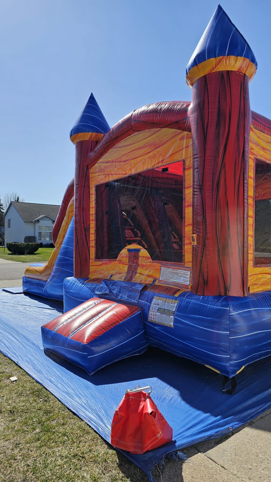 Whether you're in Holland, Zeelend, Grand Haven, or any of our other delivery areas, get ready to elevate your event with this fantastic inflatable. Perfect for creating unforgettable memories, this bounce house is a must-have for any celebration. Contact us today to reserve the Marble Castle Bounce House Combo (Dual Lane) for your upcoming event!