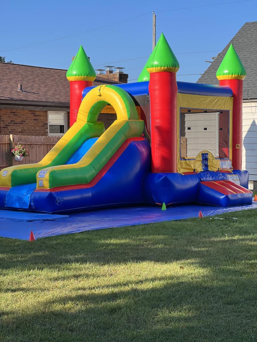 Looking to add a touch of magic to your event in Holland, Zeeland, or Grand Haven? Our Castle Bounce House Combo is the perfect choice for your next celebration! This colorful and vibrant inflatable features a spacious bounce house area with a slide attached, providing hours of fun for all ages.