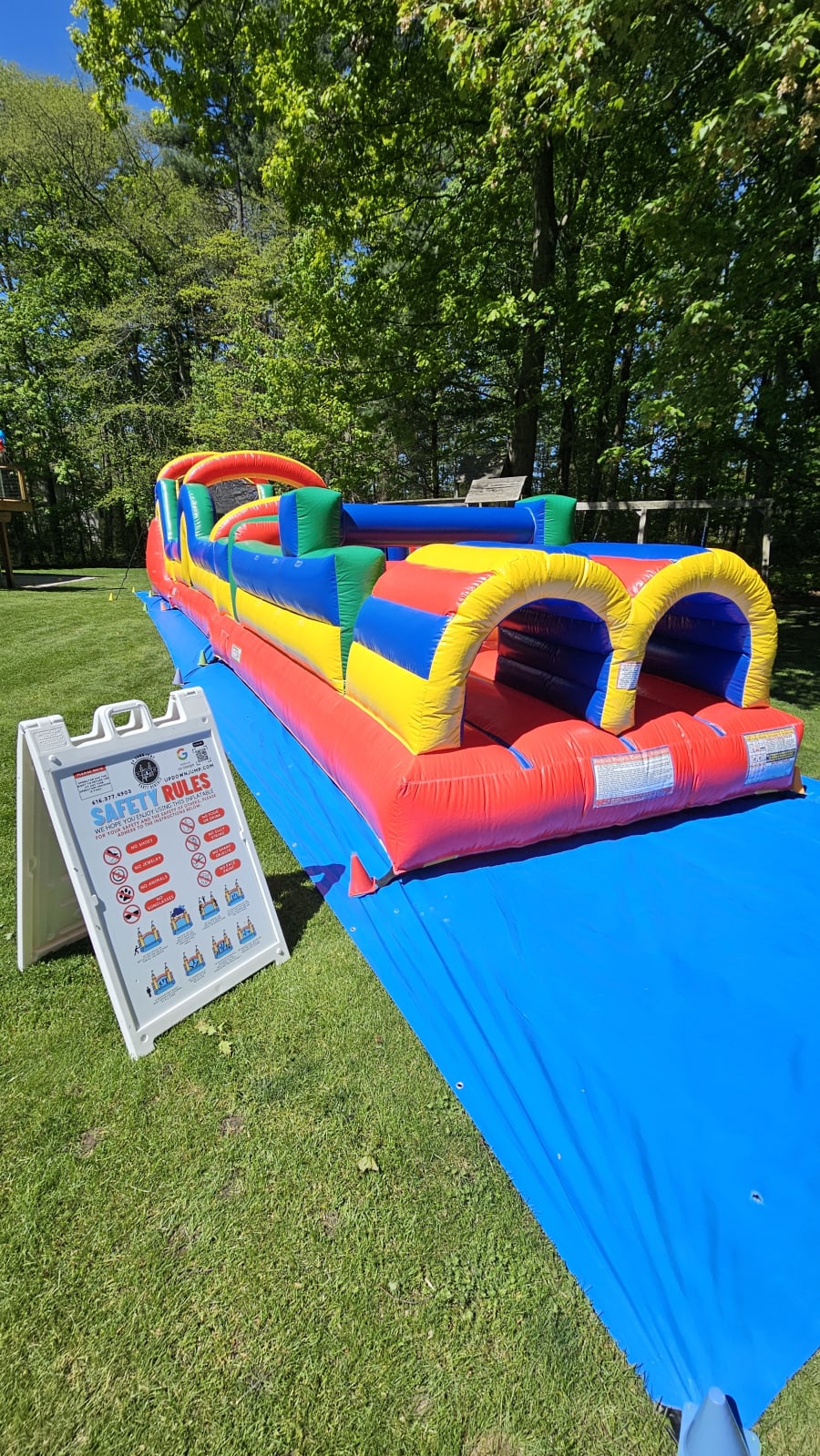 🌟 This massive 60-foot challenge course is sure to keep kids entertained and engaged for hours on end! With vibrant colors and two courses side by side, allowing for dual racing fun, it's the ultimate party centerpiece that guarantees endless laughter and excitement.