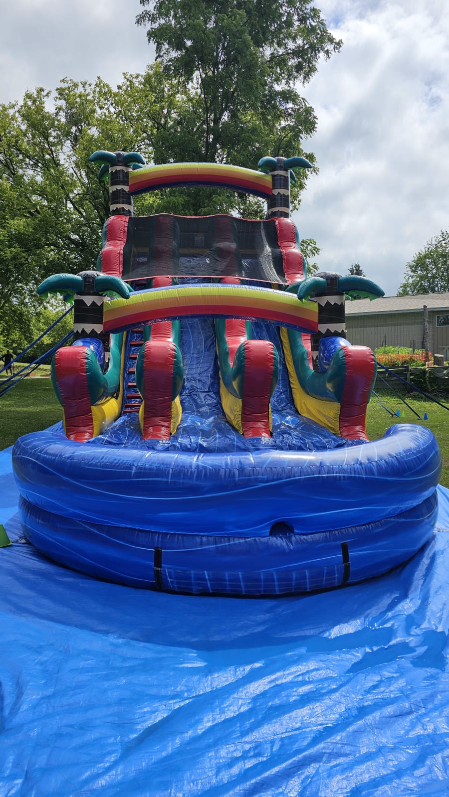 Our waterslide is thoroughly cleaned and sanitized after every use, ensuring a safe and hygienic experience for all guests. Whether you're hosting a children's birthday party or a corporate gathering, everyone can enjoy the thrill of the 21FT Blue Paradise.